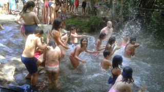 Una vez superadas las duras pruebas mañaneras, nuestros caballeros se relajan de la dura batalla librada...